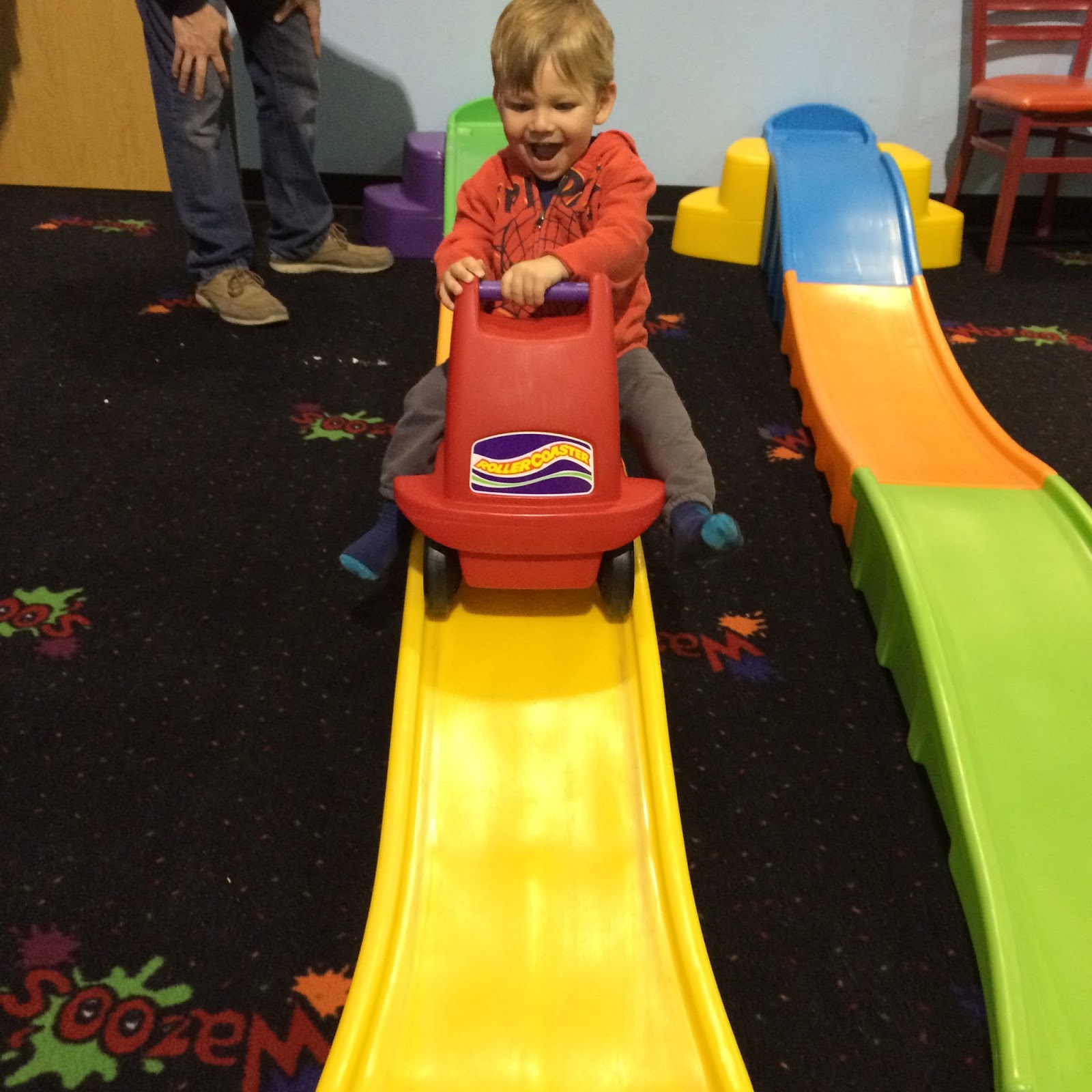 D enjoying the kiddie play area while his big brother and big cousins are bouncing in bounce castles nearby |